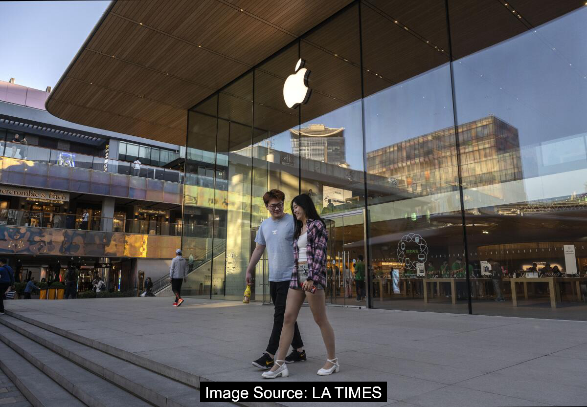 중국은 오랫동안 다양한 소비재 제품을 판매하는 미국 기업들에게 수익성 높은 시장이었습니다. 지난달 베이징의 애플 플래그십 스토어에서 나오는 한 커플의 모습에서 이를 엿볼 수 있습니다. 중국은 미국 기업들에게 매력적인 시장으로 자리잡아 왔습니다.